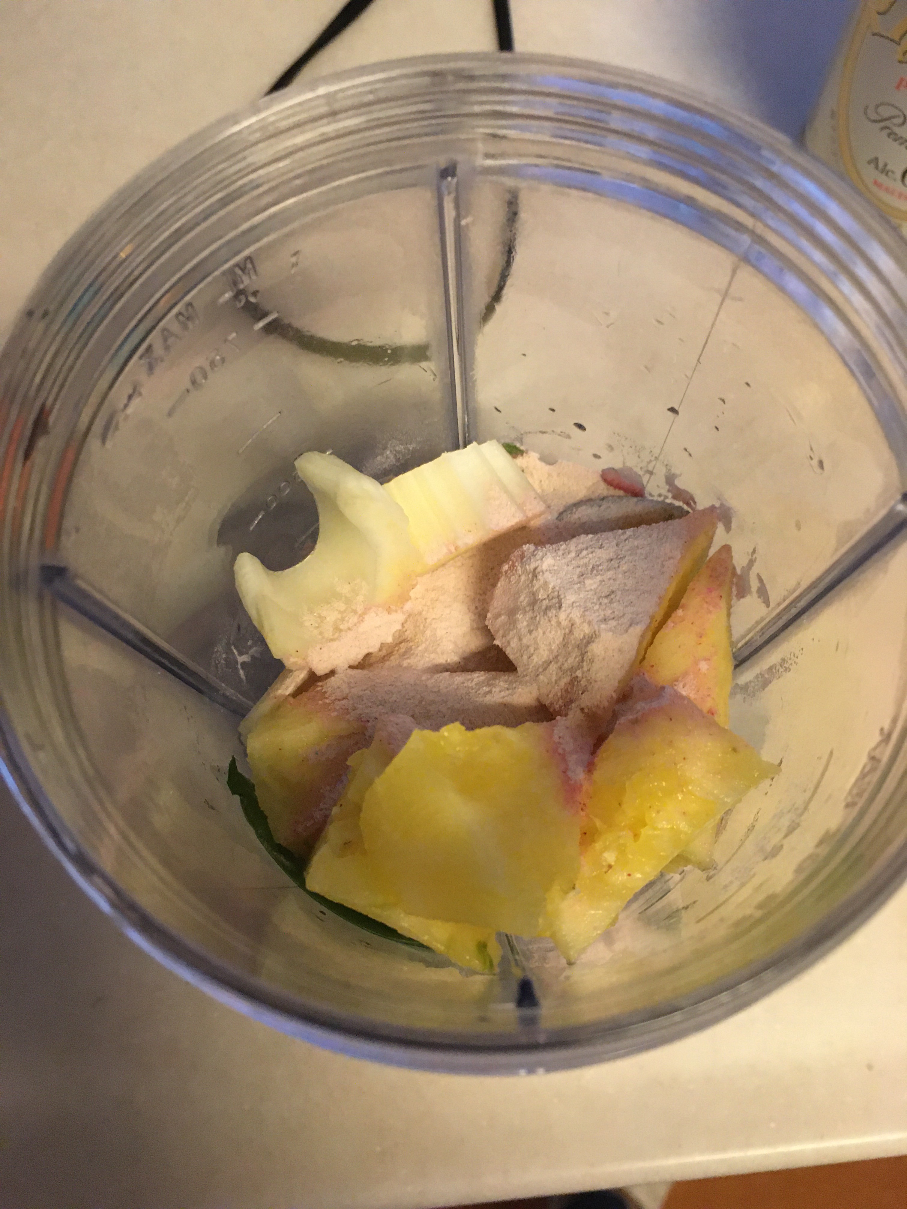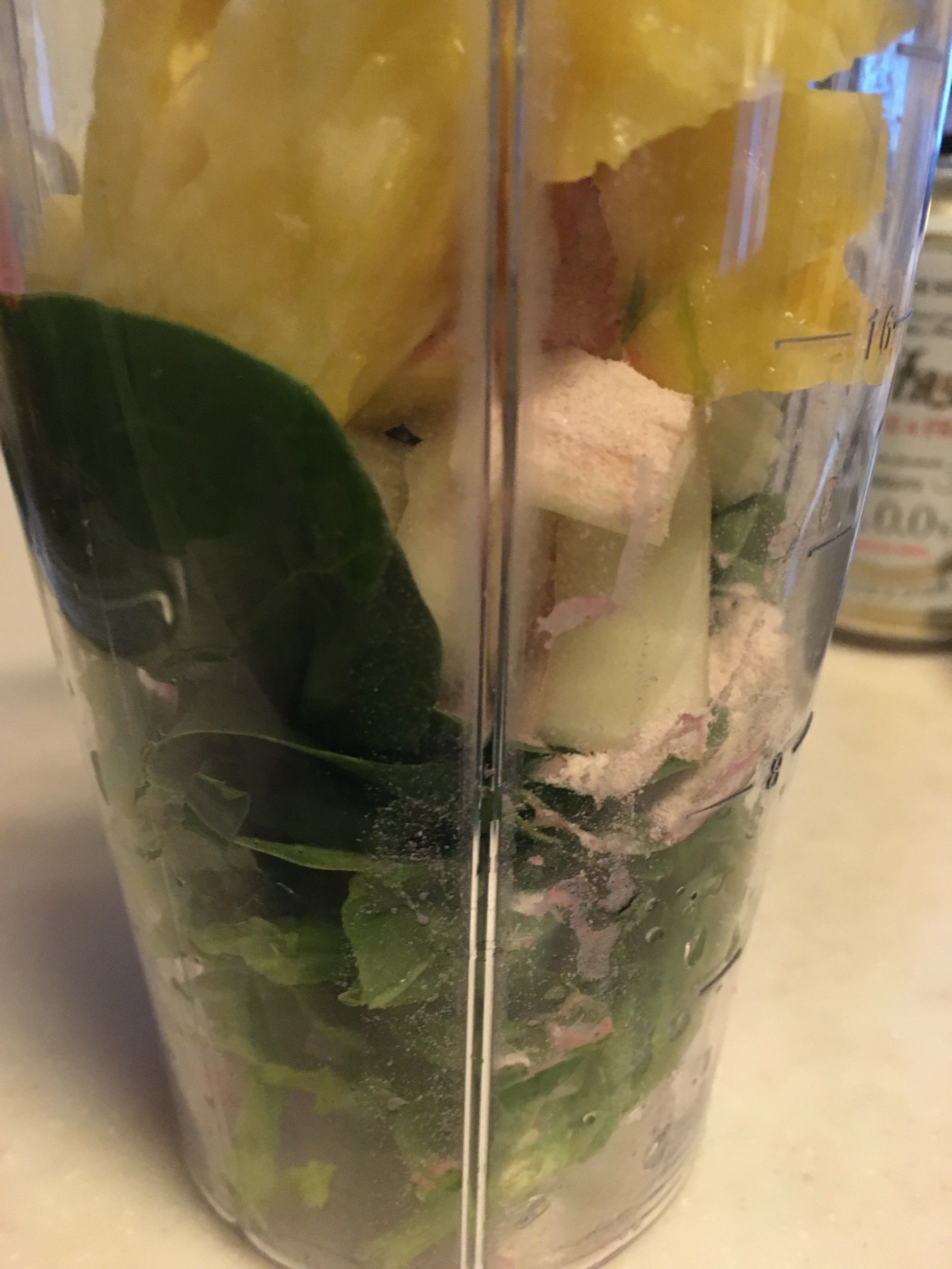 スムージーには、野菜と果物の他にオートミールとプロテインを入れると